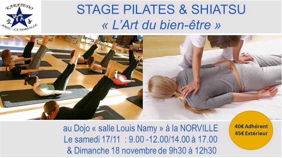 La section AMSL Karaté/Pilates a l’énorme plaisir de vous proposer un stage mixte Shiastu/Pilates avec deux experts dans le domaine, Serge Rebois (Expert Kyusho et Praticien de Shiatsu) et Nadine Casuccio (professeur de Pilates certifiée STOTT Pilates et Pilates Matwork).